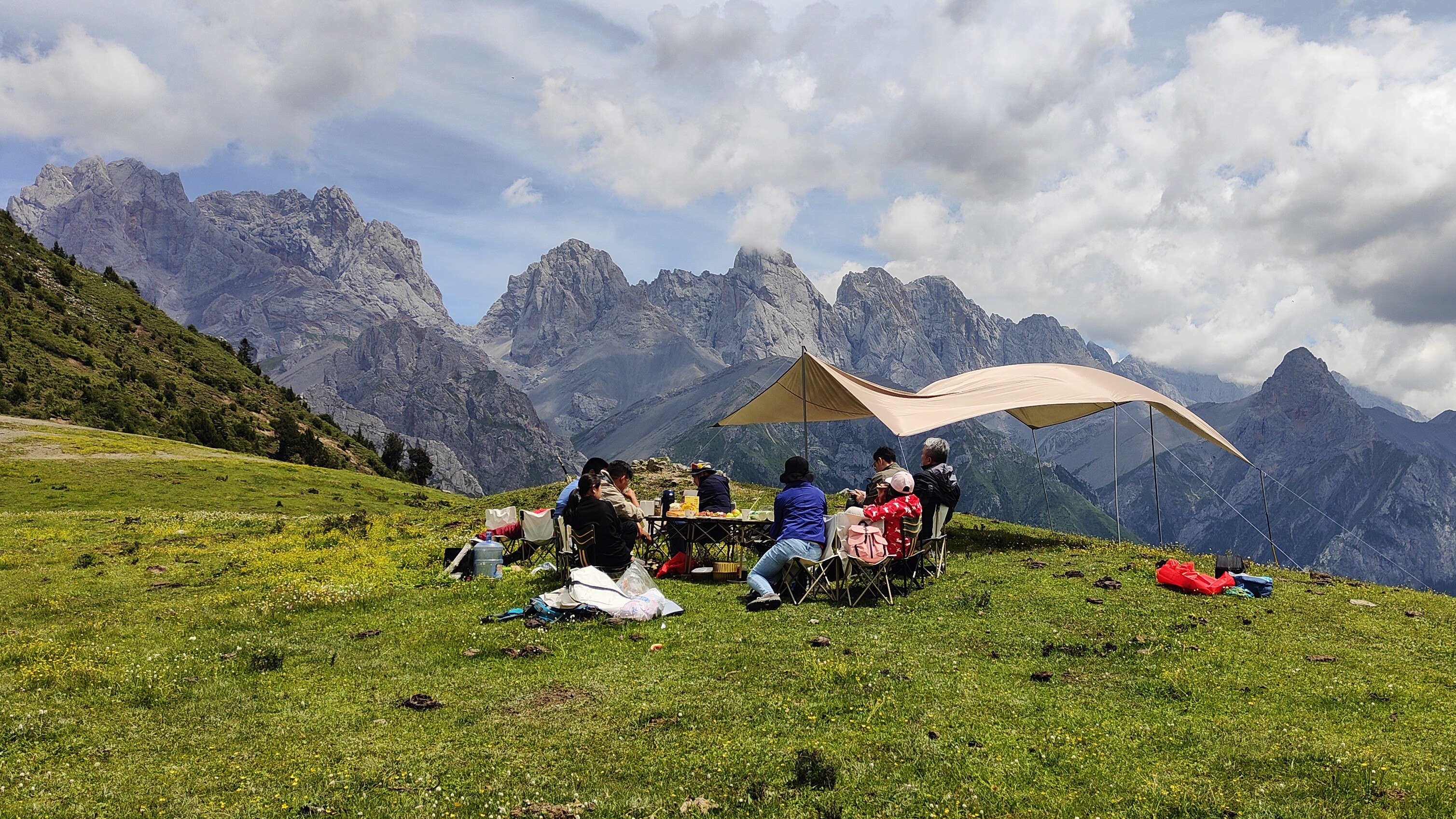 在迭山深处的高山草甸徒步4km,远眺措美峰,草地午餐后下山前往扎尕那